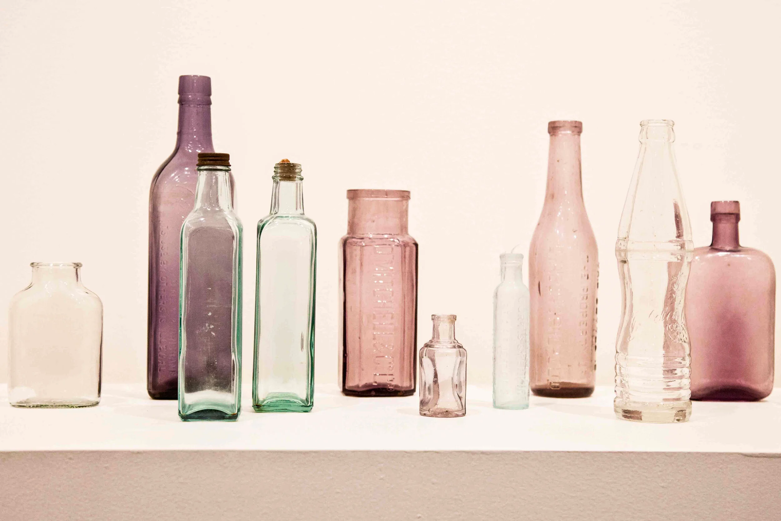 Wall text, glass bottles